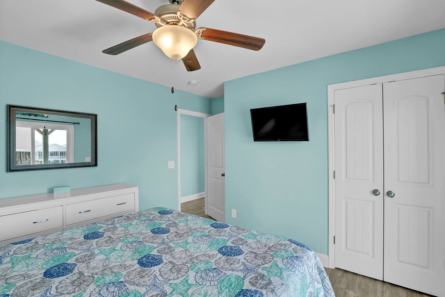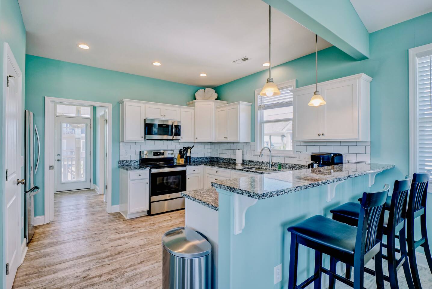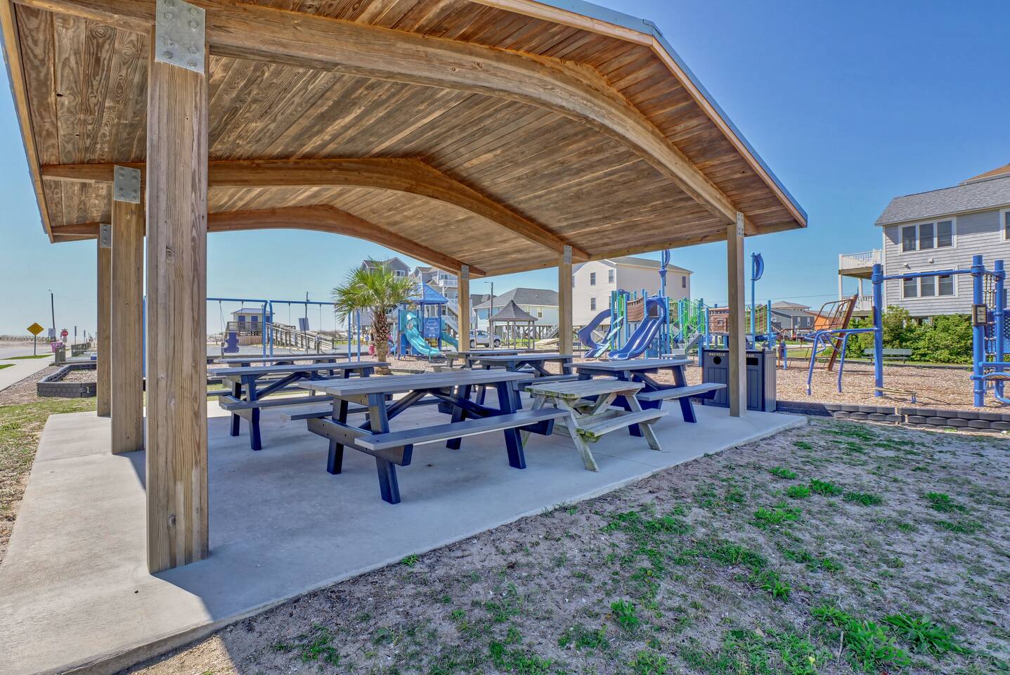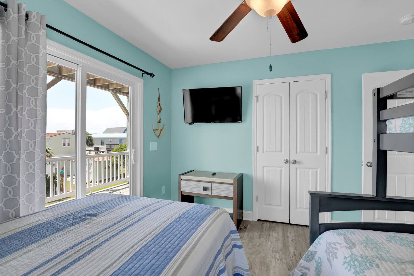 Topsail Turtle Properties! Located in the heart of Surf City, equal distance between the ocean and sound. Sip coffee in the morning on the front or back porch and enjoy the evenings grilling under the house throwing cornhole. Dog-friendly (pet fee $35 per day sent separately from the initial booking). The brand new lithium 6-seater golf cart is available to rent for an additional fee. Free beach parking with the cart! Weekly Rate $425. Less than 7 nights booking $60 a day. BEDROOMS: ★ Primary bedroom 1st floor -King bed with private bath- Roku TV in room ★2nd bedroom -Queen bed with shared bath- Roku TV ★ 3rd bedroom "bunk room" Two full size beds and 1 twin bed- Shared bath- Roku TV ★ 4th bedroom (Upstairs)- King bedroom- 2nd floor- Private bath- Roku TV Our Linen Services includes towel sets for every guest. All beds are made up prior to your arrival (sheets/comforter/pillows). AMENITIES: ★ Cruise around on the 6-seater golf cart (extra fee) ★ Pet Friendly ★ Outdoor shower ★ Every bedroom has a private deck ★ Cornhole and beach games provided ★ Gas Weber grill KITCHEN: Fully equipped with everything you need to cook your own meals. A Keurig and regular coffee pot are available. We provide a starter kit of K-cups, sugar and creamer. OUTDOOR SPACE: Enjoy the shaded outdoor space under the house. Perfect for grilling on the gas weber grill in the evenings. Outdoor picnic table and fold out chairs for sitting. There is a large storage closet with beach chairs, umbrellas, cooler, beach toys and games. A wagon is supplied to pull the beach items to the access just a short walk away.